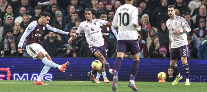 本文翻译自《教练之声》。曼联的高位逼抢在开场比赛中非常有效,尤其是当他们将对手的进攻引导到自己的左侧时:作为中锋的舍什科移至右侧,挡住了右侧的传球线。随后,库尼亚从中场开始逼抢,当有人将球传给孔萨时,他开始施压。这一次,芒特可以从边路位置恢复过来,并与布鲁诺·费尔南德斯一起盯防维拉的双中场核心。两名边后卫将直接压迫维拉的边后卫(如下图),而两名边后卫卢克·肖和约罗将准备好掩护麦金和罗杰斯。尽管维拉多次用长传打破了曼联的高位逼抢,但半场结束前曼联的逼抢还是得到了回报。多尔古、布鲁诺和库尼亚包围了曼奇左路曼联的维拉球路。肖积极从中后卫前压,为逼抢提供支持。最后,多尔格你成功地从卡什脚下完成了一次抢断(如下图所示)。球落在库尼亚脚下。在维拉取得领先后不久,他就帮助曼联扳平比分。下半场曼联继续积极的逼抢,取得了一些不错的回追,同时也限制了维拉的多次短传。维拉使用沃特金斯作为接球点。当舍什科试图从右路直接传球但失败时,维拉更多地选择长传,主要是从左路传球,以打破曼联的高位逼抢。曼联采取盯人防守原则后,罗杰斯和麦金极力拉开宽度,将曼联三名中卫卷入其中。曼联的两名边后卫高位逼抢,拉开防线之间的距离,为奥利·沃特金斯提供了一条可能的进攻线,让他在长传后跃起率先得分。蒂勒曼斯(Tielemans)作为中路插入者紧随其后,在麦金(McGinn)和罗杰斯(Rogers)的支持下两侧(下图)。罗杰斯的终结能力非常宝贵,他与约罗的一对一对决直接打进两球,帮助维拉获胜。在他周围,麦金会回撤到中场并让肖上场,而蒂勒曼斯则会在球的相反方向配合沃特金斯的空位移动。因此,当维拉直接传球时,曼联的防守会被纵向拉伸(下图)。半场结束前罗杰斯趁机内切,一脚精彩射门顶入远角。随后在下半场传中后的第二次进攻中,他再次利用约罗的防守位置将球打进远角。曼联进攻阵型阿莫林针对维拉中场拦截的4-4-2阵型,调整了进攻位置,以曼努埃尔·乌加特作为后撤球支点,站在三名中卫身前。布鲁诺将爬到更高的位置,而登上d 库尼亚将比阿莫林惯用的 3-4-2-1 阵型中的两名 10 号球员更加分散。每当维拉的中场球员跟踪时,他们都会形成一条紧密的后防线(下图),限制曼联边后卫的传中。因此,曼联倾向于将球传到10号位的肋部。此时,舍什科作为单点中锋,做出了一些巧妙的推进,迫使对方门将做出了一些漂亮的扑救。曼联的进攻定位也让他们能够快速有效地反击。他们的中场四人在进攻时靠得很近,所以当维拉得球时,他们可以快速逼近并向球施加压力(下图)。这不仅限制了维拉的反击,也为曼联自己创造了更多的进攻选择,尤其是快速将球交给芒特和库尼亚,然后与两名边后卫配合时。阿莫林替换了中场休息时受伤下场的布鲁诺,派出利桑德罗·马丁内斯上场。防守型中场,而乌加特则在下半场移至更高的位置。曼联在中路继续推进——芒特在右半场找到了一些不错的空间(下图),而维拉的罗杰斯和马瑟森的防守组织有时有些混乱。曼联通过转换或快速组合改善了宽度,为边后卫找到了传中的路径。第66分钟,多尔古完成漂亮传中,但库尼亚错失再次扳平比分的机会。尽管比赛后期有大量的转换,尽管他们在对阵维拉的比赛中表现出许多积极和进步的表现,但曼联未能找到在最后三分之一完成致命一击的方法。最终,曼联很遗憾未能将良好的表现转化为积分,而维拉的胜利让他们仅落后圣诞节前领头羊阿森纳三分。 。 ⬇️在不同平台上关注我们以获得持续更新。 ⬇️